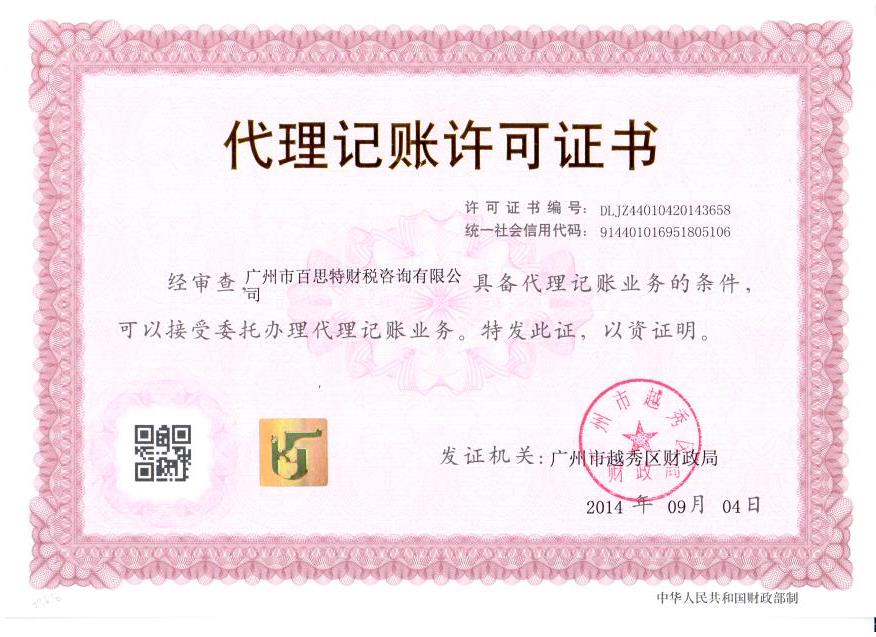 本公司具有代理記賬資質。專業服務,歡迎咨詢!